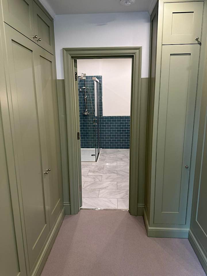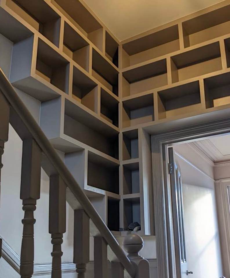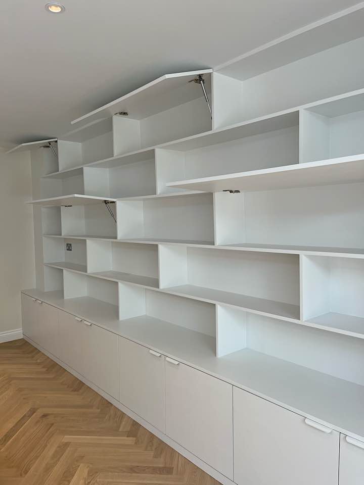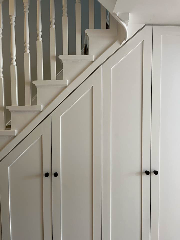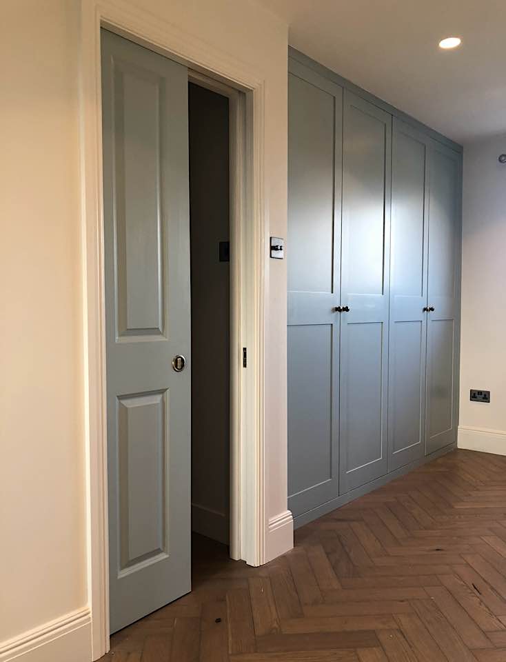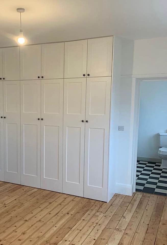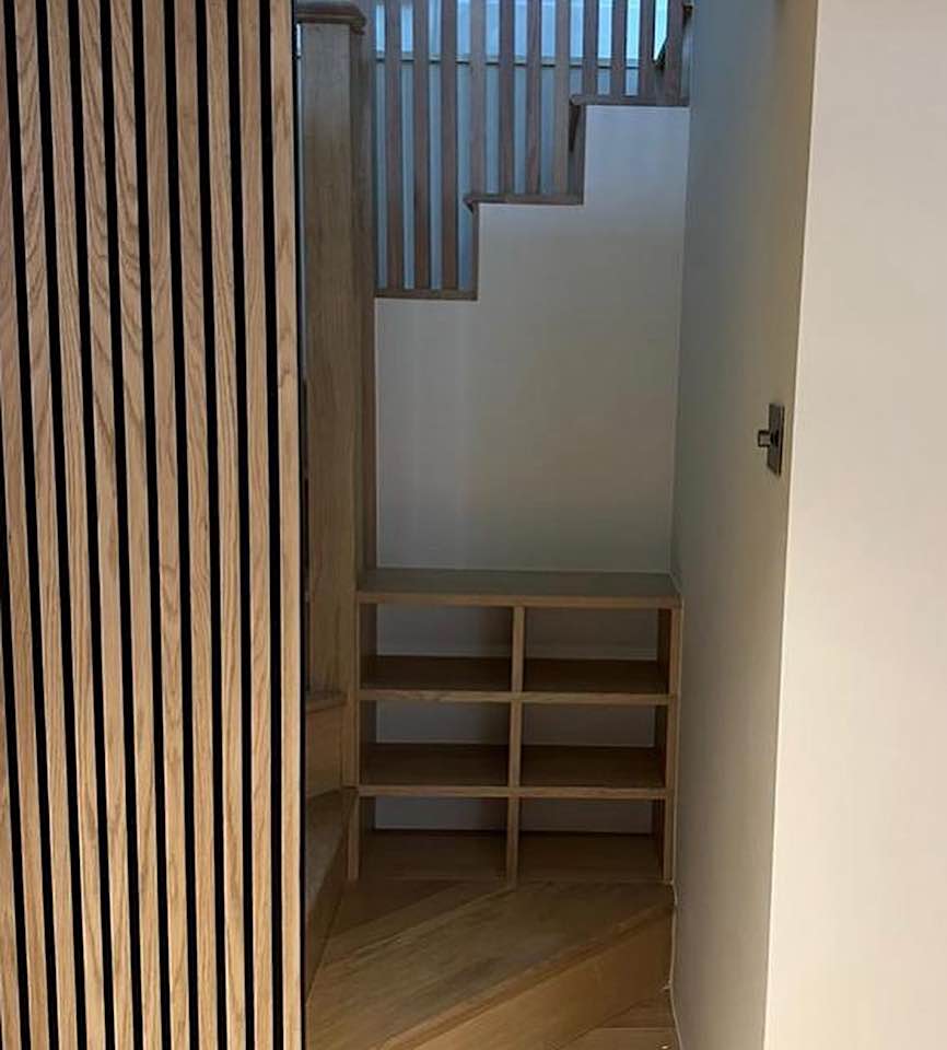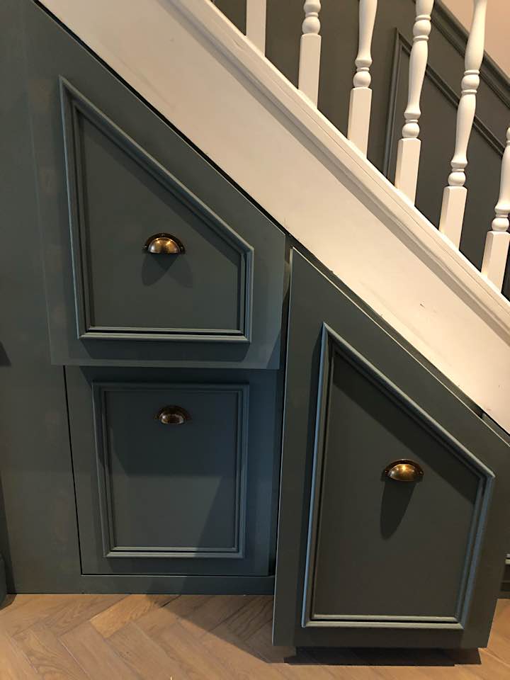 We specialise in all aspects of bespoke carpentry and joinery including kitchen installation, worktop fitting, cabinet making, storage solutions, built in cupboards, floating shelves, shelving, wardrobes, hanging doors, bath & wall panels, staircases, wooden flooring. We often design storage solutions for our clients across many rooms in the home.