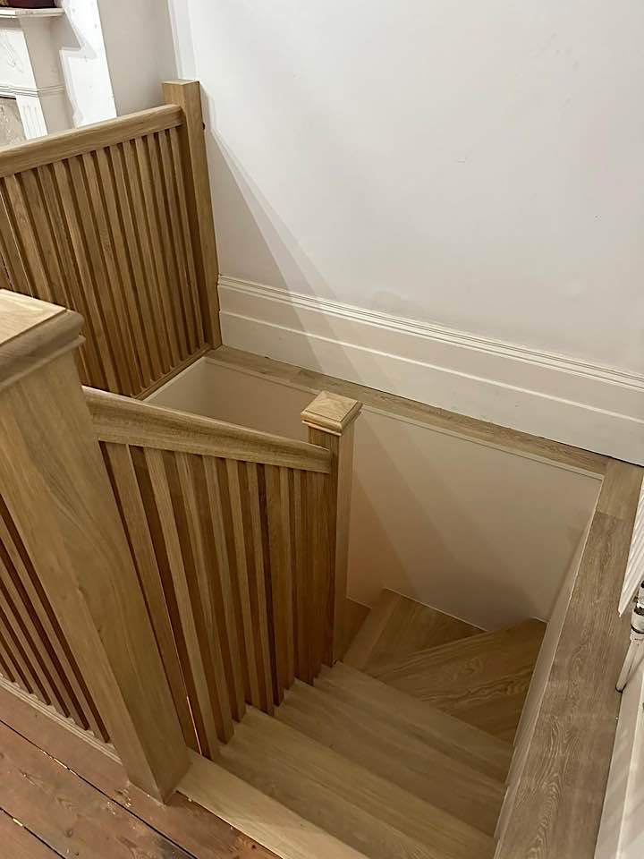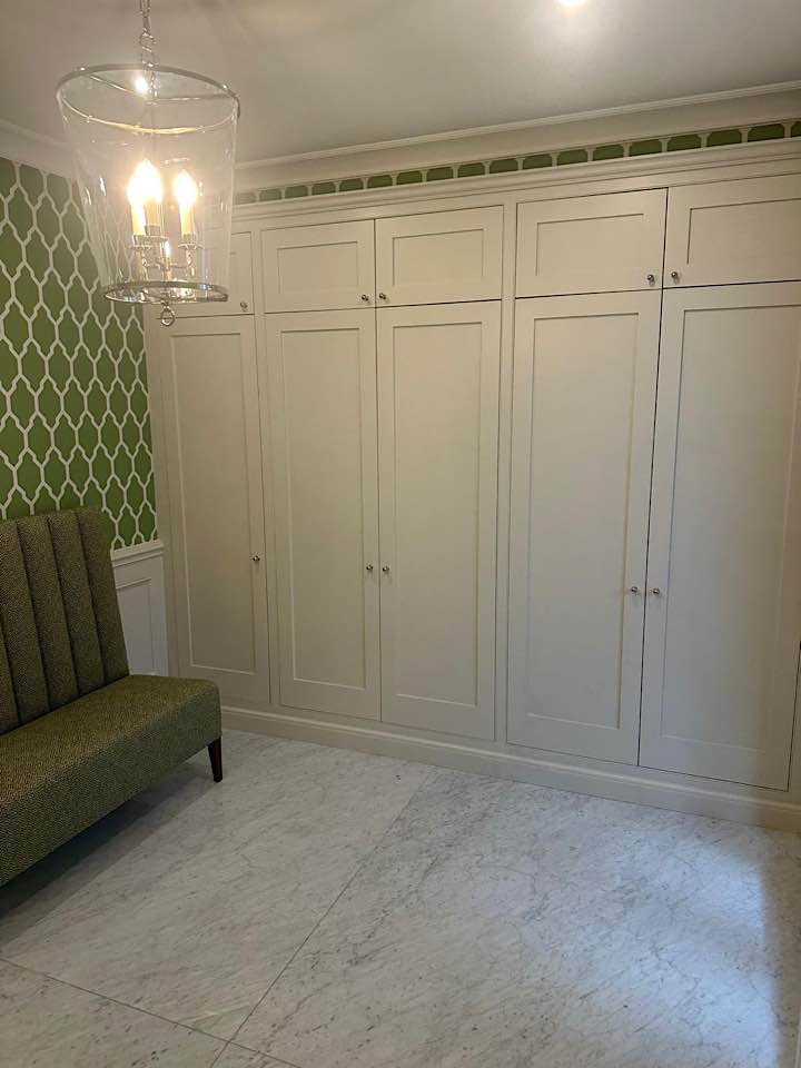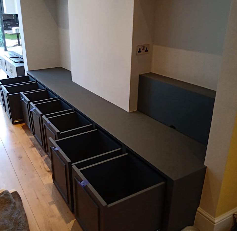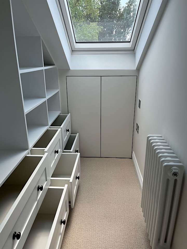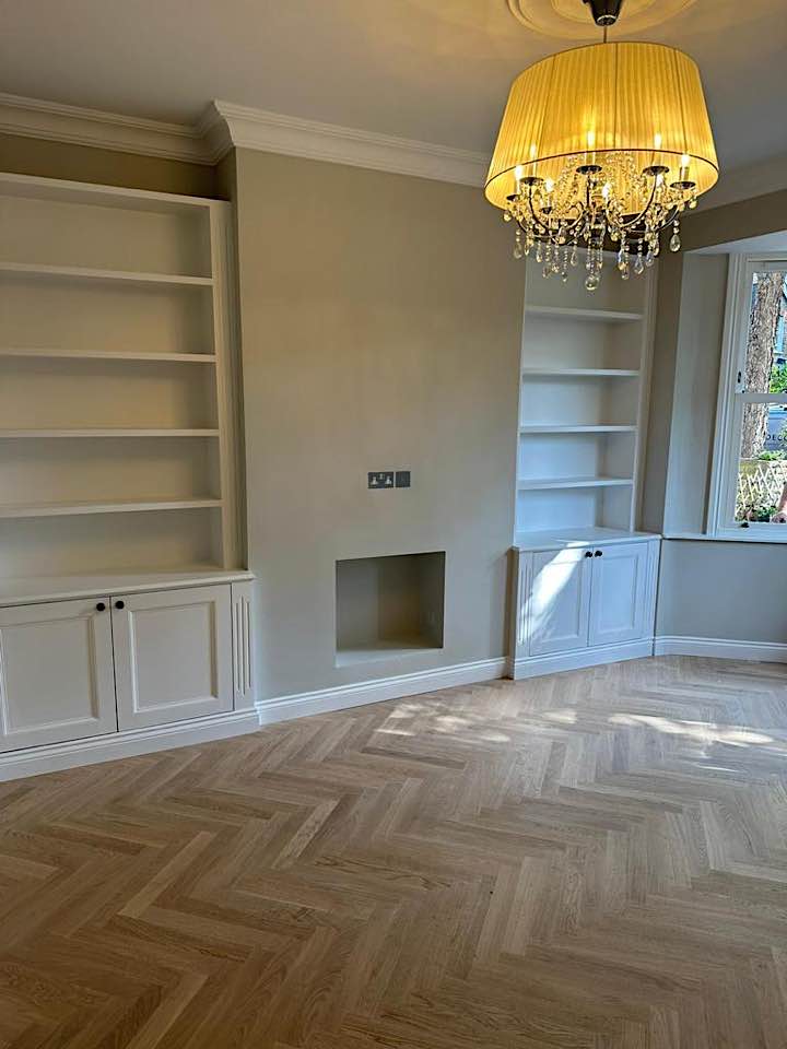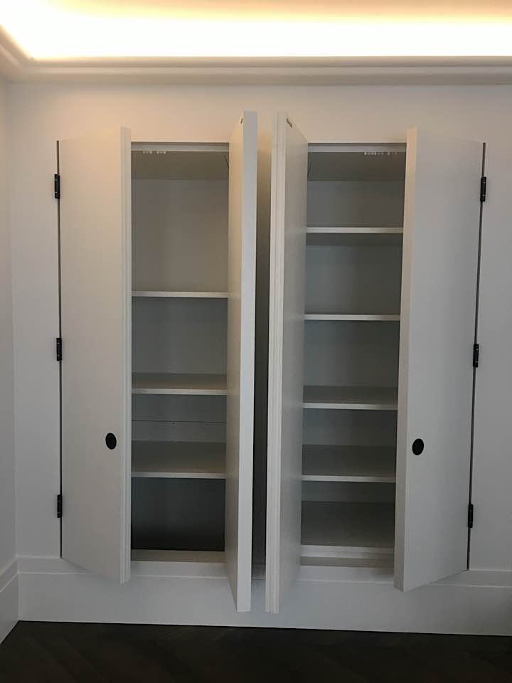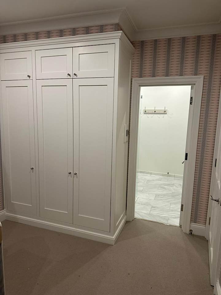 We specialise in all aspects of bespoke carpentry and joinery including kitchen installation, worktop fitting, cabinet making, storage solutions, built in cupboards, floating shelves, shelving, wardrobes, hanging doors, bath & wall panels, staircases, wooden flooring. We often design storage solutions for our clients across many rooms in the home.